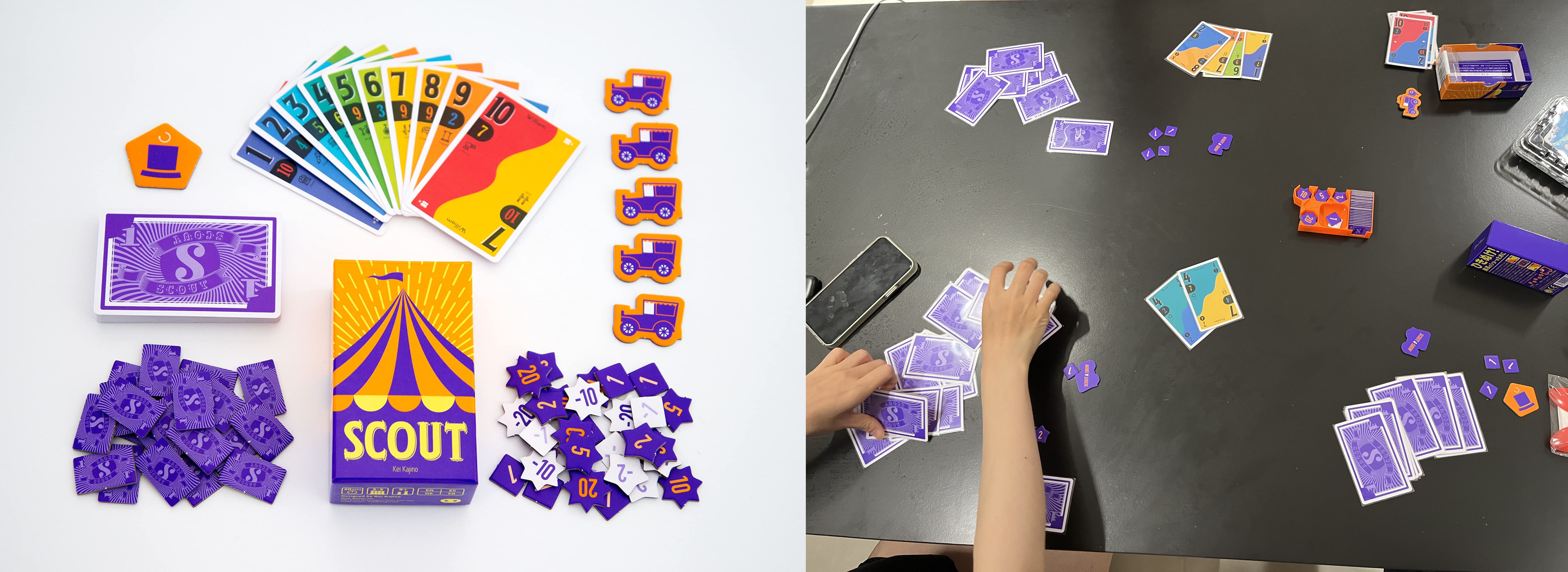 我手上的这盒《SCOUT》是在日本旅游时购入——这可能是迄今为止我们在线下开得次数最多的桌游,得益于其明显的优点:机制有趣、盒小容易携带、节奏快互动性强,很适合重策结束之余玩几把放松一下。因为游戏是积分制,我们通常会轮流当一把先手来结算总分,经常会出现戏剧性场面。开得太多到后来我反而有些抵触心理。