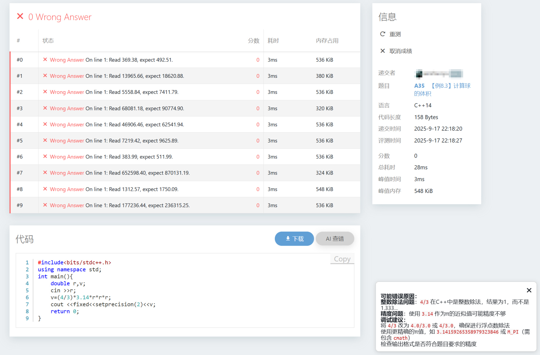 。hydrooj 在提交记录的代码展示右上角有一个下载按钮,我正好并排加入一个 AI 查错 按钮。这次需要收集题目详情、代码、编程语言、测评结果、编译错误等数据,ChatGPT5 建议我用 window.LLM_ASSIST_CONTEXT